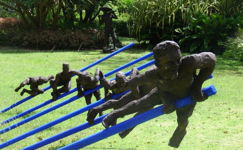 Among a variety of things I loved about my five-day visit to Barbados, a highlight stands out: the stirring sculptures at the Gallery at Lancaster Great House. The fascinating pieces made of coral stone and plaster by the resident artist Jerome Radigois from Martinique dot the gorgeous garden of the pink-colored house.