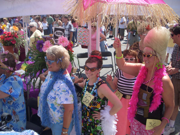 But let’s back up and introduce the “hons.” First picture an old grandmother type – think 60s, hair in a bouffont ‘do (or perhaps curlers still in the hair), sporting cats eye glasses, lots of make-up (mantra: “you can never wear enough blue eye shadow”) and decked out in a patterned housecoat or anything spandex, especially animal print (see Hairspray – the original – as a point of reference). And of course they call you Hon (affectionate, as in honey). So maybe you won’t actually see these “hons” wandering the street if you visit Hampden, but every June they come out in hoards. Literally. Welcome to HonFest. The “Miss Hon” contest is always a highlight where beauty and talent collide; the corresponding “Little Miss Hon” competition is for the young ones with high aspirations. And if you’re feeling left out of the fun, you can always stop by the “Glamour Lounge” for your very own teased hair and lots of hairspray.