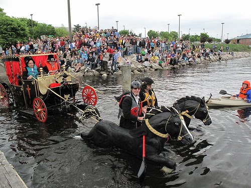 While Baltimore can’t claim ownership of the Kinetic Sculpture Race (that credit goes to California, and a very special man named Hobart Brown), I’d venture to say that this city embraces the race better than any other. The premise is: anyone can enter their own (wo)man-powered kinetic (sculptural) vehicle. But it’s more than a vehicle – beyond traveling 15 miles across and around the city, each must be able to travel on land, in water, through sand and mud. While the vehicle needs to do each one of these things, the kicker is the fact it need not do it well, for the real winner of this race is the most mediocre – the one that finishes in the dead middle of the pack.